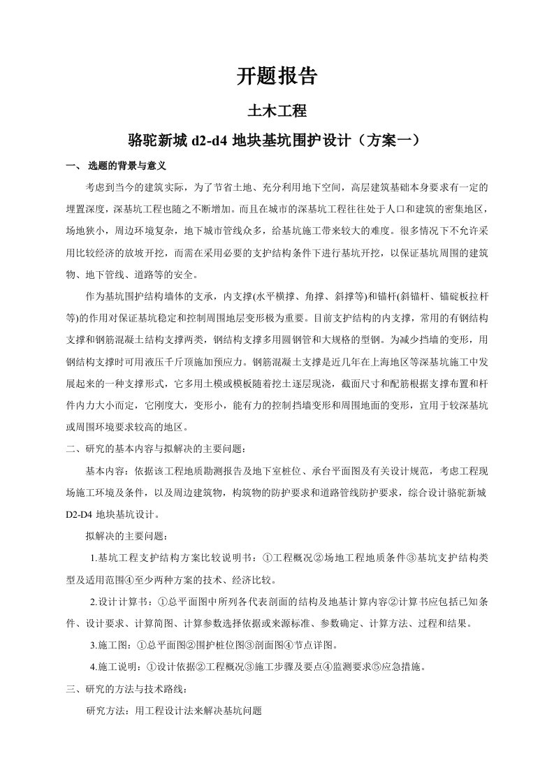国骅世纪宜家花园B地块基坑围护设计(方案一)【开题报告】