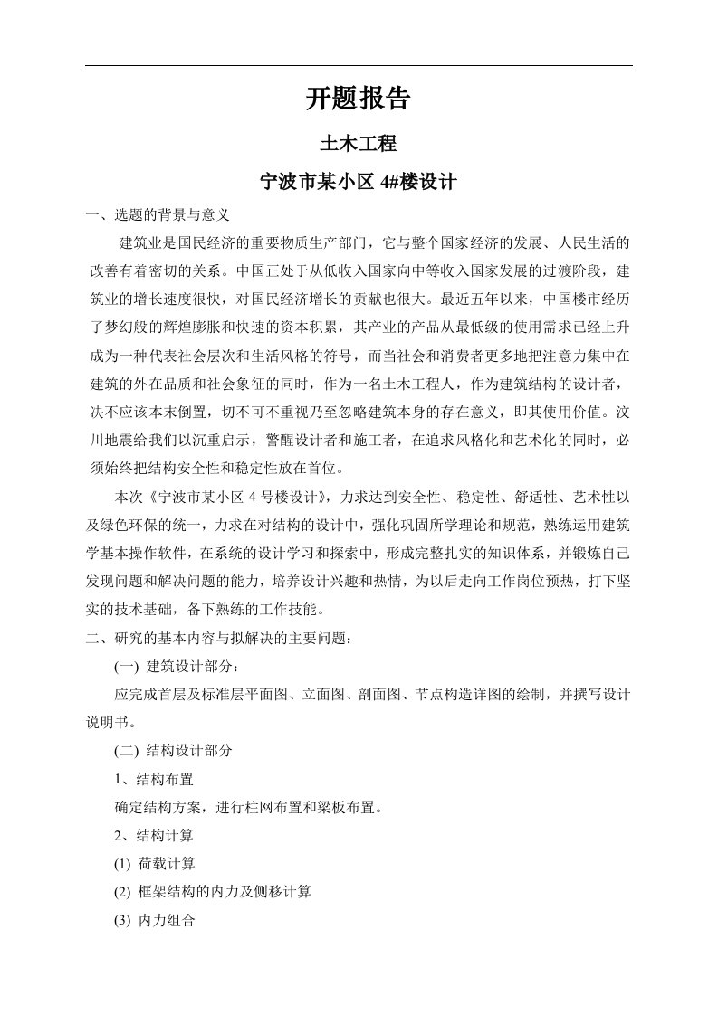 某八层钢筋混凝土住宅楼设计(方案一)【开题报告】
