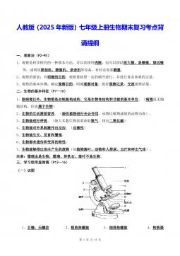 人教版(2025年新版)七年级上册生物期末复习考点背诵提纲