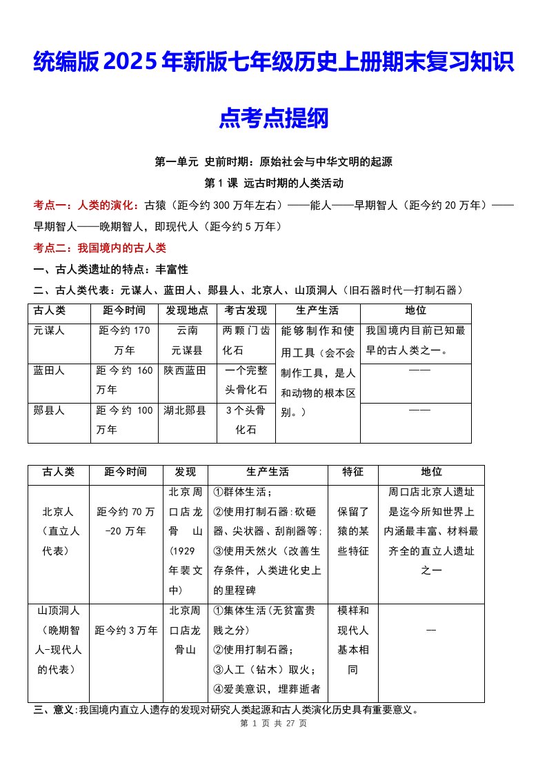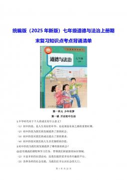 统编版(2025年新版)七年级道德与法治上册期末复习知识点考点背诵清单