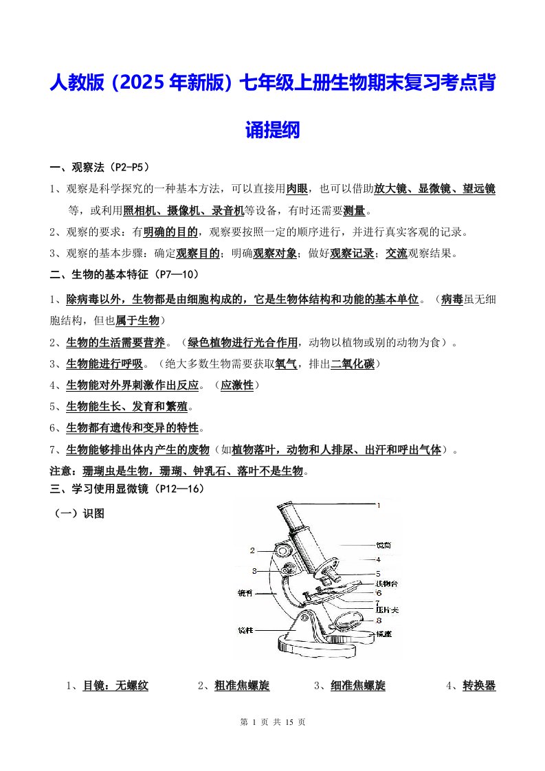 统编版(2025年新版)七年级道德与法治上册期末复习知识点考点背诵清单